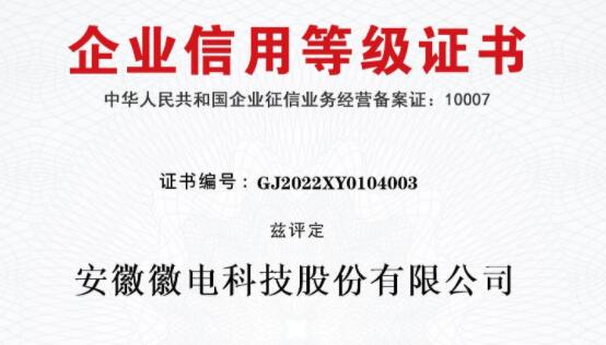 • 徽電科技榮獲“AAA級企業(yè)信用等級”認證